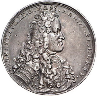 Los-Nummer: Auktion 51 - 924 Altdeutsche Münzen und Medaillen Hessen-Darmstadt Ernst Ludwig 1678-1739, Medaille 1699, von Roth. Brustbild nach rechts / Pietas und Justitia. Schütz 2826, Hoffmeister 3517. 32 mm, 11,58 g. Sehr schön Schätzpreis: 175,- Zuschlag: 280,- |