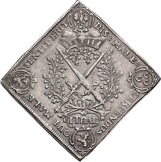 Los-Nummer: Auktion 51 - 1572 Altdeutsche Münzen und Medaillen Sachsen-Albertinische Linie Johann Georg IV. 1691-1694, Talerklippe 1693. Auf das Schießen bei der Verleihung des Hosenbandordens. Slg. Merseburger 1311, Schnee 977, Davenport 7649. Henkelspur, sehr schön Schätzpreis: 300,- Zuschlag: 270,- |
