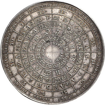 Los-Nummer: Auktion 51 - 1929 Altdeutsche Münzen und Medaillen Würzburg, Bistum Franz Ludwig von Erthal 1779-1795, Kalendermedaille 1780, unsigniert. Innerhalb von zwei Schriftkreisen Quadrat mit den Sonntagen des Jahres 1780 / Sieben Kreisringe mit verschiedenen Kalenderangaben. Helmschrott 877, Slg. Piloty 1282 , Strothotte 1780-3, vergl. Auktion UBS 52, September 2002, Nr. 1495. Schöne Patina. Vorzüglich + Schätzpreis: 600,- Zuschlag: 520,- |