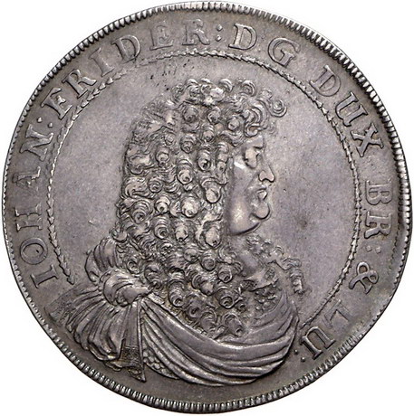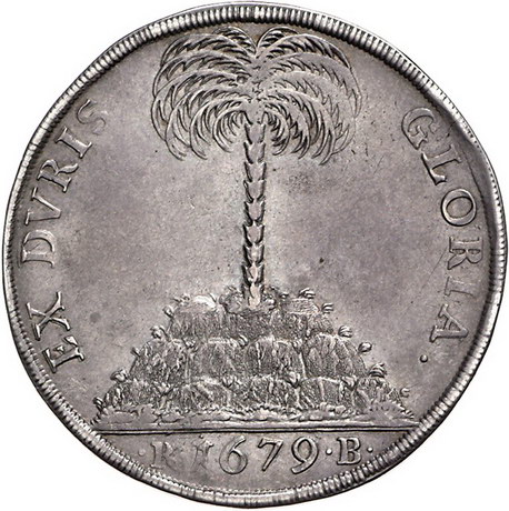 Los-Nummer: Auktion 51 - 663 Altdeutsche Münzen und Medaillen Braunschweig-Calenberg-Hannover Johann Friedrich 1665-1679, Palmbaumtaler 1679 RB, Zellerfeld. Brustbild / Palme auf Felsen. Geteilte Umschrift. Welter 1707, Davenport 6576. Schöne Patina. Sehr schön + Schätzpreis: 750,- Zuschlag: 775,- |