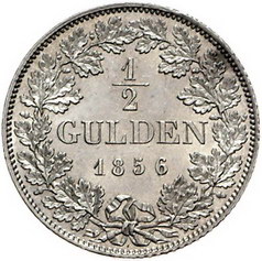 Los-Nummer: Auktion 51 - 141 Altdeutsche Münzen und Medaillen Bayern Maximilian II. Joseph 1848-1864, 1/2 Gulden 1856. Jaeger 81, AKS 152. Stempelglanz Schätzpreis: 125,- Zuschlag: 210,- |