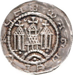 Los-Nummer: Auktion 51 - 1017 Altdeutsche Münzen und Medaillen Magdeburg, Erzbistum Rudgar von Veltheim oder Norbert 1119-1134, Brakteat. 0,95 g. +MAGDEBVRCH Drei bekreuzte Türme über Bogen. Berger 1608 ('unediert'). Schöne Patina. Besonders gut ausgeprägt. Vorzüglich Schätzpreis: 400,- Zuschlag: 525,- |