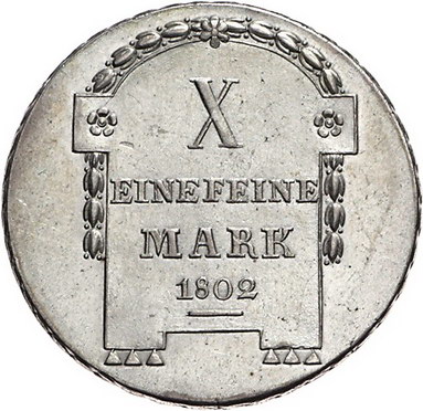 Los-Nummer: Auktion 51 - 1729 Altdeutsche Münzen und Medaillen Schaumburg-Lippe Georg Wilhelm, unter Vormundschaft 1787-1807, Taler 1802, Hannover. Prägung unter Vormundschaft. Weinmeister 65, AKS 1, Thun 387, Kahnt 524. Zaponiert, fast vorzüglich Schätzpreis: 400,- Zuschlag: 420,- |