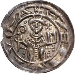 Los-Nummer: Auktion 51 - 846 Altdeutsche Münzen und Medaillen Halberstadt, Bistum Ulrich von Reinstein. Erste Regierung 1149-1160, Brakteat. 0,82 g. St. Stephan mit Krummstab und Buch sitzend von vorn, darüber fünf Punkte. Slg. Bonhoff 457, Slg. Löbbecke 17, Berger 1263, Besser/Brämer/Bürger 14.09. Kl. Randfehler, sehr schön - vorzüglich Schätzpreis: 150,- Zuschlag: unverkauft |