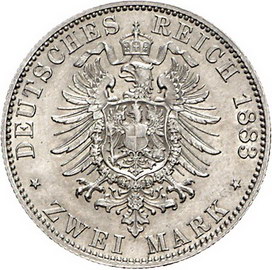 Los-Nummer: Auktion 51 - 2670 Münzen des Deutschen Kaiserreichs Sachsen Albert 1873-1902, 2 Mark 1883 E. Jaeger 121. Vorzüglich Schätzpreis: 250,- Zuschlag: unverkauft |