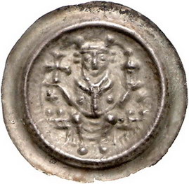 Los-Nummer: Auktion 51 - 928 Altdeutsche Münzen und Medaillen Hildesheim, Bistum Konrad II. 1221-1246, Brakteat. 0,78 g. Auf Mauer sitzender Bischof, in der Rechten gleichschenkliges Kreuz, in der Linken Kuppelturm. Mehl 126 , Slg. Bahrfeldt 2576 (Helmstedt). Sehr schön - vorzüglich Schätzpreis: 200,- Zuschlag: 575,- |