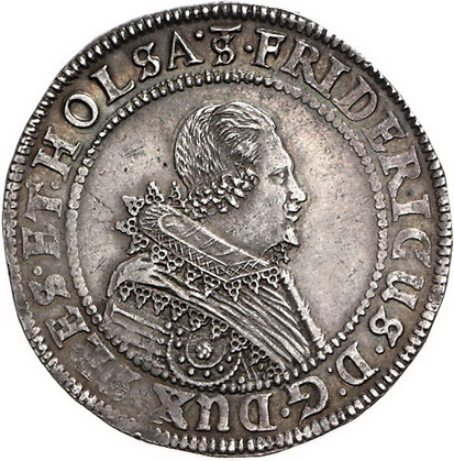Los-Nummer: Auktion 51 - 1759 Altdeutsche Münzen und Medaillen Schleswig-Holstein-Gottorp Friedrich III. 1616-1659, Taler 1626 ST, Schleswig. Lange 324 a, Davenport 3698/3699. Schöne Patina. Vorzüglich Schätzpreis: 1000,- Zuschlag: 1050,- |