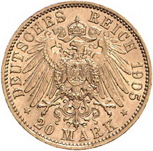 Los-Nummer: Auktion 51 - 2689 Münzen des Deutschen Kaiserreichs Sachsen Friedrich August III. 1904-1918, 20 Mark 1905 E. Jaeger 268. GOLD. Vorzüglich Schätzpreis: 175,- Zuschlag: unverkauft |