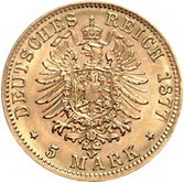 Los-Nummer: Auktion 51 - 2731 Münzen des Deutschen Kaiserreichs Württemberg Karl 1864-1891, 5 Mark 1877 F. Jaeger 291. GOLD. Winz. Randfehler, vorzüglich Schätzpreis: 350,- Zuschlag: unverkauft |
