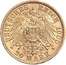 Los-Nummer: Auktion 51 - 2738 Münzen des Deutschen Kaiserreichs Württemberg Wilhelm II. 1891-1918, 20 Mark 1900 F. Jaeger 296. GOLD. Sehr schön - vorzüglich Schätzpreis: 150,- Zuschlag: unverkauft |