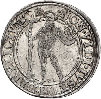 Los-Nummer: Auktion 51 - 619 Altdeutsche Münzen und Medaillen Braunschweig-Wolfenbüttel Heinrich der Jüngere 1514-1568, Taler 1541, Riechenberg. Brustbild mit Mütze und Pelzkragen nach links / Wilder Mann hält Baumstamm. Welter 389, Davenport 9043. Vorzüglich Schätzpreis: 750,- Zuschlag: 1800,- |
