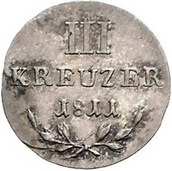 Los-Nummer: Auktion 51 - 66 Altdeutsche Münzen und Medaillen Baden-Durlach Karl Friedrich 1806-1811, 3 Kreuzer 1811. Jaeger 8, AKS 19. Vorzüglich + Schätzpreis: 250,- Zuschlag: unverkauft |