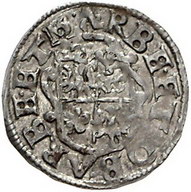 Los-Nummer: Auktion 51 - 93 Altdeutsche Münzen und Medaillen Barby, Grafschaft Wolfgang II. 1586-1615, 1/24 Taler 1613 mit Namen Matthias. BARBE.ETM0BARBE.ET.M Verziertes vierfeldiges Wappen / Reichsapfel mit Z4. Mehl -, zu 80 Typus VI. Etwas Fundbelag. Sehr schön Schätzpreis: 175,- Zuschlag: unverkauft |