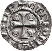 Los-Nummer: Auktion 51 - 967 Altdeutsche Münzen und Medaillen Köln, Erzbistum Hermann II. - und Kaiser Konrad II. 1027-1039, Pfennig, unbekannte Münzstätte. 1,30 g. +HRMAN/// Gebäude mit COL-NIA zwischen M - R, unten M, im Giebel ein Fisch oder liegendes S / +CHVONRADVSMP Kreuz, im ersten und dritten Winkel eine Scheibe, im zweiten und dritten ein Dreiblatt. Hävernick 261, Dannenberg 385 a. Sehr schön Schätzpreis: 75,- Zuschlag: 95,- |