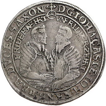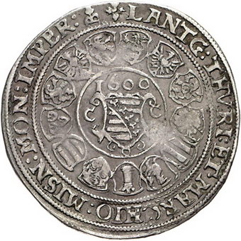 Los-Nummer: Auktion 51 - 1634 Altdeutsche Münzen und Medaillen Sachsen-Coburg-Eisenach (Alt-Gotha) Johann Casimir und Johann Ernst 1572-1633, 1/2 Taler 1600 CC, Coburg. Grasser 98, Slg. Merseburger -, Kozinowski/Otto/Ruß 91. Fast sehr schön Schätzpreis: 125,- Zuschlag: 100,- |