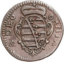 Los-Nummer: Auktion 51 - 1649 Altdeutsche Münzen und Medaillen Sachsen-Neu-Gotha Friedrich I. mit seinen sechs Brüdern 1675-1680, Cu Rechenpfennig 1678. A DEO - OMNIA Sächsisches Rautenwappen / CO / BVRGER / RECHEN / PFENNING / 1678. Grasser 363, Slg. Merseburger 3375, Kozinowski/Otto/Ruß 1256. Sehr schön Schätzpreis: 175,- Zuschlag: 140,- |