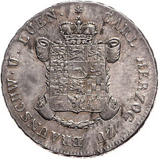 Los-Nummer: Auktion 51 - 654 Altdeutsche Münzen und Medaillen Braunschweig-Wolfenbüttel Karl 1815-1830, 24 Mariengroschen 1828 CvC. Jaeger 238 b, AKS 55, Kahnt 148. Schöne Patina. Winz. Schrötlingsfehler, vorzüglich + Schätzpreis: 90,- Zuschlag: 72,- |