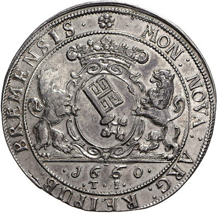 Los-Nummer: Auktion 51 - 699 Altdeutsche Münzen und Medaillen Bremen, Stadt Taler 1660. Jahreszahl im Stempel aus 1650 geändert. Jungk 495, Davenport 5107 A. Sehr schön - vorzüglich Schätzpreis: 500,- Zuschlag: 600,- |