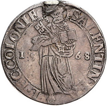 Los-Nummer: Auktion 51 - 978 Altdeutsche Münzen und Medaillen Köln, Erzbistum Salentin von Isenburg 1567-1577, 1/2 Taler 1568, Deutz. Noss 70. Henkelspur, sehr schön Schätzpreis: 175,- Zuschlag: unverkauft |