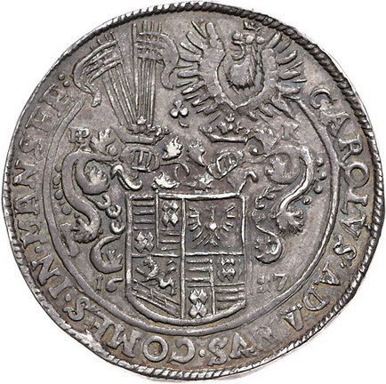 Los-Nummer: Auktion 51 - 1060 Altdeutsche Münzen und Medaillen Mansfeld-vorderortische Linie zu Bornstedt Karl Adam 1655-1660, Taler 1657. Tornau 271, Davenport 6930. Schöne Patina. Fast vorzüglich Schätzpreis: 350,- Zuschlag: 590,- |