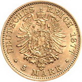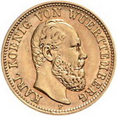 Los-Nummer: Auktion 51 - 2730 Münzen des Deutschen Kaiserreichs Württemberg Karl 1864-1891, 5 Mark 1877 F. Jaeger 291. GOLD. Vorzüglich Schätzpreis: 400,- Zuschlag: unverkauft |