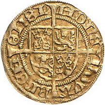 Los-Nummer: Auktion 51 - 680 Altdeutsche Münzen und Medaillen Bremen, Erzbistum Heinrich II. von Schwarzburg 1463-1496, Goldgulden, Bremen. St. Petrus in halber Figur von vorn mit Schlüssel und Buch, unten das Schwarzburger Wappen / Vierfeldiges Wappen auf Langkreuz. Umschrift endet EP'IB. Jungk 38 var, Bethe - vergl. 1533 ff, Friedberg 427. GOLD. Sehr schön - vorzüglich Schätzpreis: 1250,- Zuschlag: 1000,- |