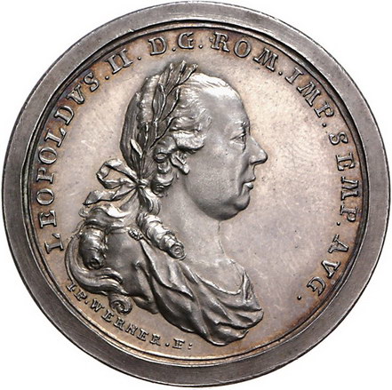 Los-Nummer: Auktion 51 - 1285 Altdeutsche Münzen und Medaillen Nürnberg, Stadt Medaillen, Medaille 1790, von Werner. Geschenkmedaille der Stadt, anlässlich der Kaiserwahl Leopolds. Belorbeertes Brustbild nach rechts / Krönungsinsignien auf Altar, am Fuß Stadtwappen. Slg. Erlanger 1167 , J.u.F. 929, Förschner 396. 45,5 mm, 28,20 g. Prachtexemplar. Fast Stempelglanz Schätzpreis: 1250,- Zuschlag: unverkauft |