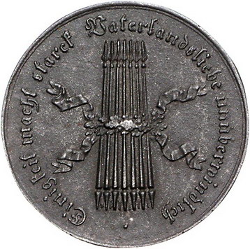 Los-Nummer: Auktion 51 - 1702 Altdeutsche Münzen und Medaillen Sachsen-Coburg-Saalfeld Ernst 1806-1826, Eisengussmedaille 1814. Für die Freiwilligen des 5. deutschen Armeekorps. Lanzenbündel / Schrift. Slg. Julius 3266, Bramsen 1582, Nimmergut 2438. 37 mm. Vorzüglich Schätzpreis: 175,- Zuschlag: unverkauft |