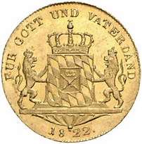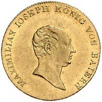 Los-Nummer: Auktion 51 - 124 Altdeutsche Münzen und Medaillen Bayern Maximilian I. Joseph 1806-1825, Dukat 1822, München. Kopf / Wappen. Jaeger 112, AKS 38 , Divo/Schramm 17, Friedberg 265. GOLD. Vorzüglich - Stempelglanz Schätzpreis: 1000,- Zuschlag: 800,- |