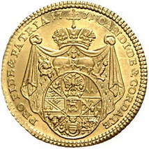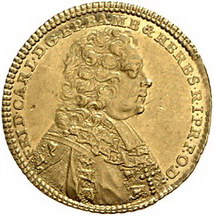 Los-Nummer: Auktion 51 - 91 Altdeutsche Münzen und Medaillen Bamberg, Bistum Friedrich Karl von Schönborn 1729-1746, Dukat 1731, Nürnberg. Stempel wahrscheinlich von P.P. Werner. Brustbild im Ornat nach rechts / Gekrönter Wappenmantel mit ovalem Stiftswappen mit Fürstenhut und aufgelegtem Familienwappen als Mittelschild. Krug 387, Friedberg -, Helmschrott 635. GOLD. Vorzüglich / vorzüglich - Stempelglanz Schätzpreis: 3000,- Zuschlag: 2500,- |