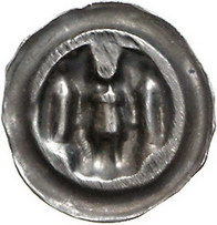 Los-Nummer: Auktion 51 - 42 Altdeutsche Münzen und Medaillen Anhalt Die Nachfolger Heinrichs I. Brakteat. 0,58 g. Stehender Fürst zwischen zwei auf Unterbau stehenden Kuppeltürmen. Thormann 370, Bahrfeldt vergl. 439. Sehr schön Schätzpreis: 75,- Zuschlag: 85,- |