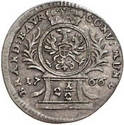 Los-Nummer: Auktion 51 - 186 Altdeutsche Münzen und Medaillen Brandenburg-Bayreuth Friedrich Christian 1763-1769, 2 1/2 Kreuzer 1766. Slg. Wilmersdörffer 809. Sehr schön Schätzpreis: 50,- Zuschlag: 60,- |