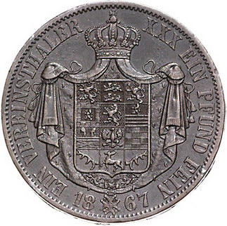 Los-Nummer: Auktion 51 - 656 Altdeutsche Münzen und Medaillen Braunschweig-Wolfenbüttel Wilhelm 1831-1884, Taler 1867 B. Einseitiger Probeabschlag vom Rückseitenstempel in Blei. Jaeger zu 257, Thun zu 123, AKS zu 81, Kahnt zu 155. Mit Randschrift. Dazu: Nassau. 1/4 Kreuzer. Einseitiger Abschlag. 2 Stück. Sehr schön Schätzpreis: 50,- Zuschlag: 70,- |