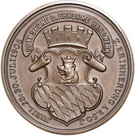 Los-Nummer: Auktion 51 - 1604 Altdeutsche Münzen und Medaillen Sachsen-Dresden, Stadt Medaillen von Friedrich Wilhelm Hörnlein, Bronzemedaille 1906. Auf den Stadtpfarrer und Ehrenbürger von Schrobenhausen im Kreis Neuburg, Michael Thalhofer (1855-1929). Brustbild leicht nach links gewandt / Wappen. Arnold - vergl. 13. 28 mm. Vorzüglich + Schätzpreis: 200,- Zuschlag: 260,- |