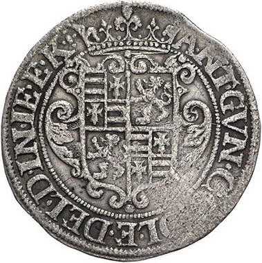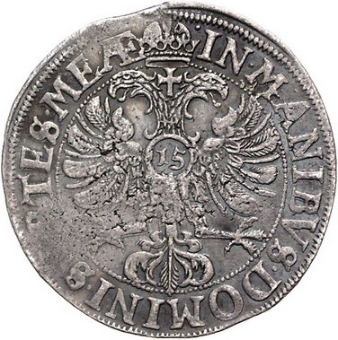Los-Nummer: Auktion 51 - 1302 Altdeutsche Münzen und Medaillen Oldenburg Anton Günther 1603-1667, Gulden zu 15 Schaf o.J. Gekröntes vielfeldiges Wappen / Gekrönter Doppeladler, Reichsapfel mit Wertzahl 15 auf der Brust. Kalvelage/Trippler 171. Kl. Zainende, Prägeschwäche, sehr schön + Schätzpreis: 750,- Zuschlag: 600,- |