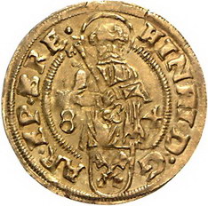 Los-Nummer: Auktion 51 - 684 Altdeutsche Münzen und Medaillen Bremen, Erzbistum Heinrich III. von Lauenburg 1567-1585, Goldgulden 1584, Buxtehude. Münzzeichen Doppellilie. Münzmeister Andreas Metzner. Hüftbild des Hl. Petrus mit Schlüssel und Buch teilt die abgekürzte Jahreszahl, unten das Stiftswappen / Reichsapfel in Dreipass aus Zwillingsfäden, in der Umschrift Name und Titel Rudolphs II. Jungk 289 , Friedberg 435, Slg. Danziger 204. Von größter Seltenheit. Sehr schön Schätzpreis: 10000,- Zuschlag: 8000,- |