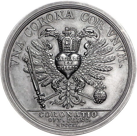 Los-Nummer: Auktion 51 - 2163 Haus Habsburg Haus Habsburg Karl VI. 1711-1740, Medaille 1711, von P.H. Müller. Auf seine Krönung. Brustbild des Kaisers in ovalem Medaillon umgeben von sechs Medaillons mit den Brustbildern der sechs Kurfürsten / Reichsadler. Slg. Montenuovo 1369 , Förschner 163, J.u.F. 661, Forster 774. 48,5 mm, 46,80 g. Schöne Patina. Vorzüglich - Stempelglanz Schätzpreis: 900,- Zuschlag: 725,- |