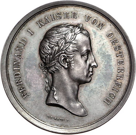Los-Nummer: Auktion 51 - 2211 Haus Habsburg Haus Habsburg Ferdinand I. 1835-1848, Medaille 1843, von Roth. Auf den Ausbau des Stephansdoms in Wien. Belorbeerte Büste nach rechts / Die Turmspitze, an den Seiten schwebende Engel. Slg. Montenuovo 2605. 46,5 mm, 52,63 g. Schöne Patina. Vorzüglich - Stempelglanz Schätzpreis: 150,- Zuschlag: 165,- |