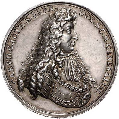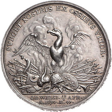 Los-Nummer: Auktion 51 - 2111 Haus Habsburg Haus Habsburg Leopold I. 1657-1705, Medaille 1690, von Hautsch. Auf den Tod des Herzogs von Lothringen in der Schlacht bei Wels. Brustbild nach rechts / Phönix aus brennenden Trophäen aufsteigend. Slg. Montenuovo 1101 , Slg. Julius -, Slg. Erlanger 2521, Slg. Robert 1578. 40 mm 25,52 g. Vorzüglich Schätzpreis: 750,- Zuschlag: 1100,- |